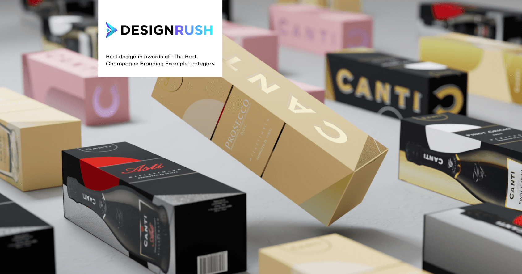 We recently implemented a very cool packaging branding case for the Italian brand Canti which was honored by Design Rush and received a Best design awards for The Best Champagne Branding Example nomination.