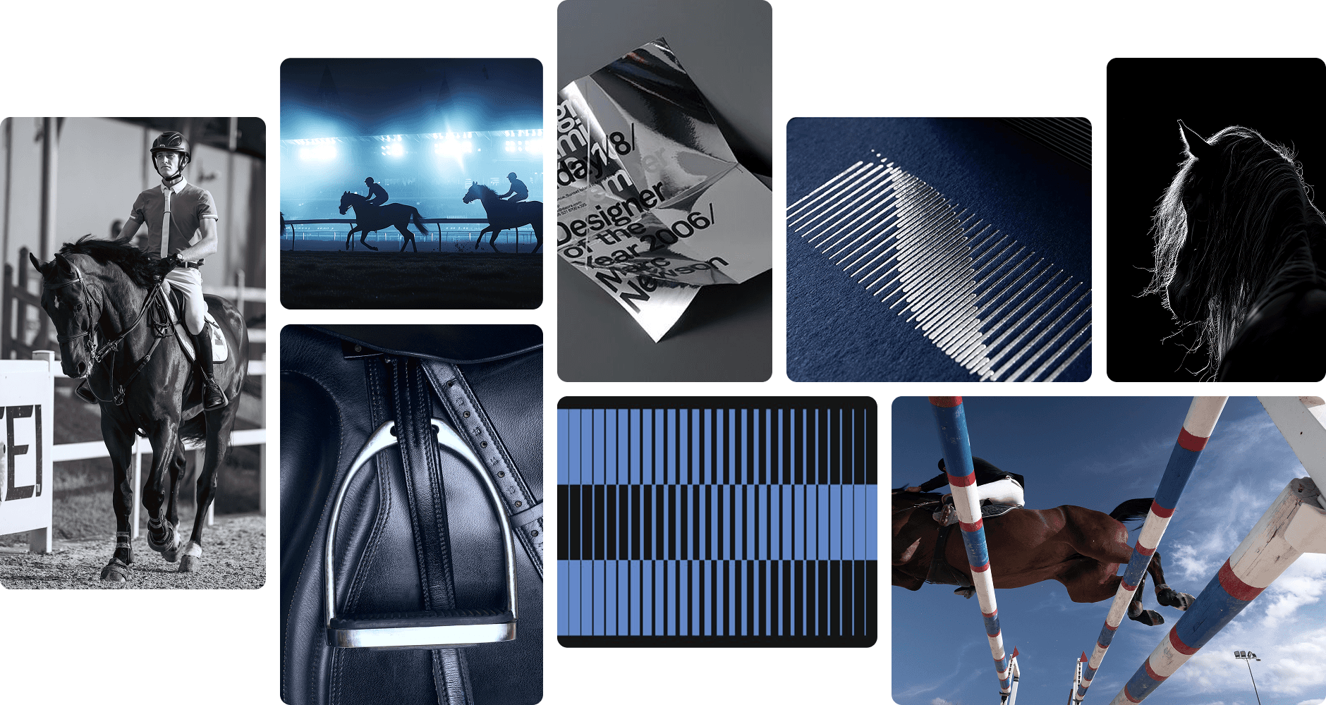 Brand identity for use in sports: ammunition (horse harnesses, blankets, frock coats), visual materials, media support.
