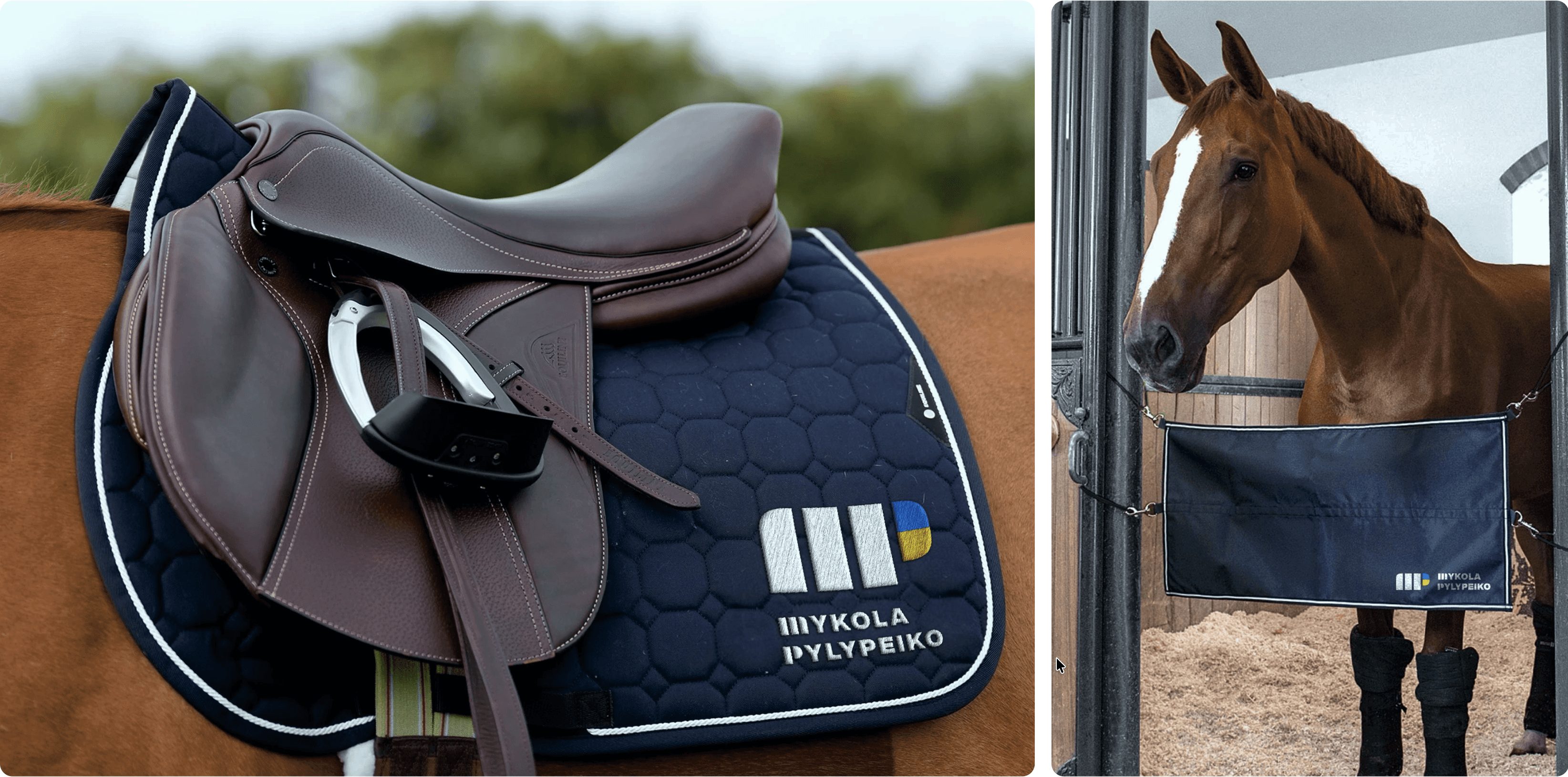 Mykola Pylypeiko's individual logo — with a Ukrainian code, unique typography, and a recognizable rhythm, reminiscent of hoof prints and the rider's special horizontal grip.